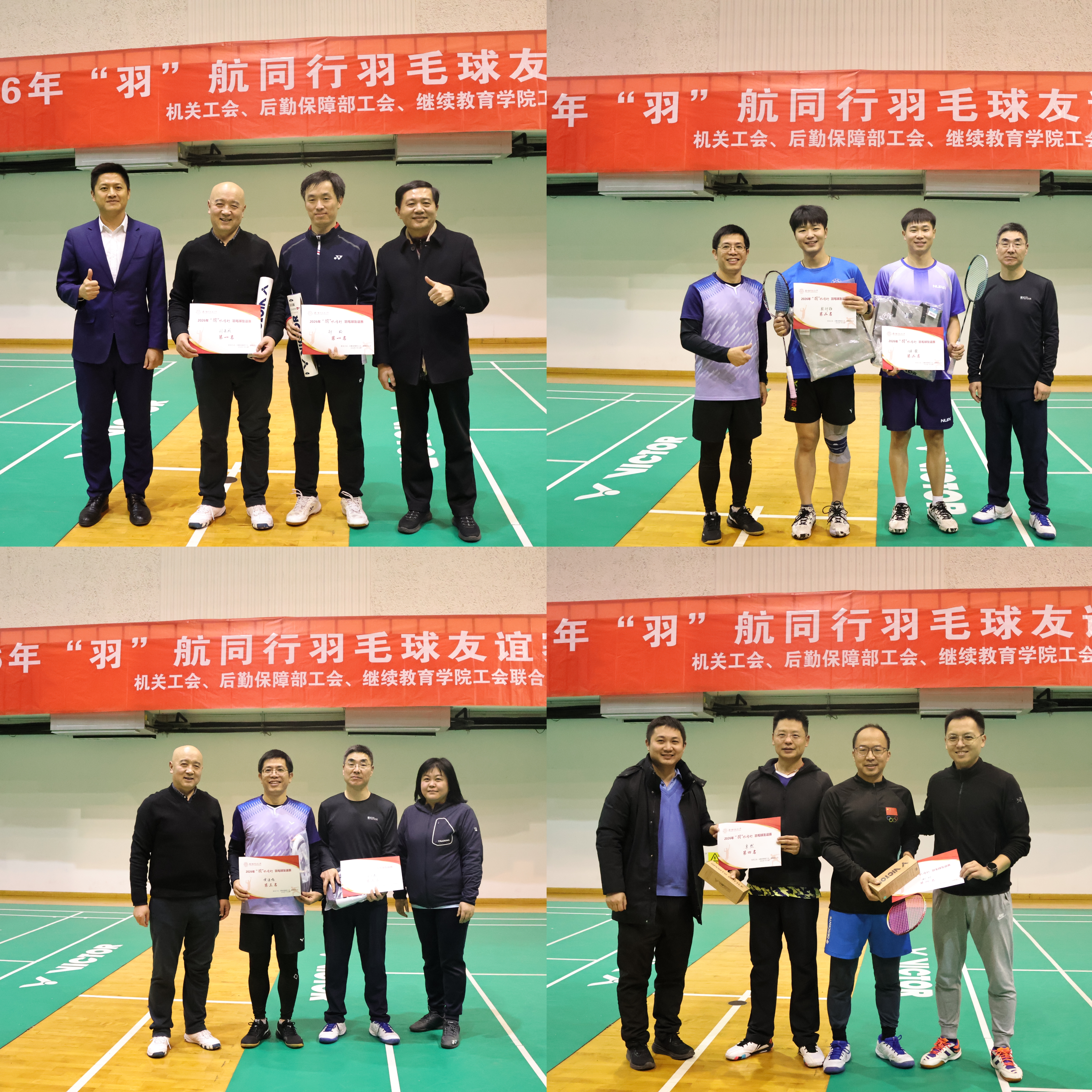 最终,羽毛球双打比赛结果揭晓:继续教育学院刘建成、郑骏夺得冠军,后勤保障部段邵杨、姚嵩获得亚军,校机关黄海鸣、王兴虎获得季军,谢科、卓然获得第四名。