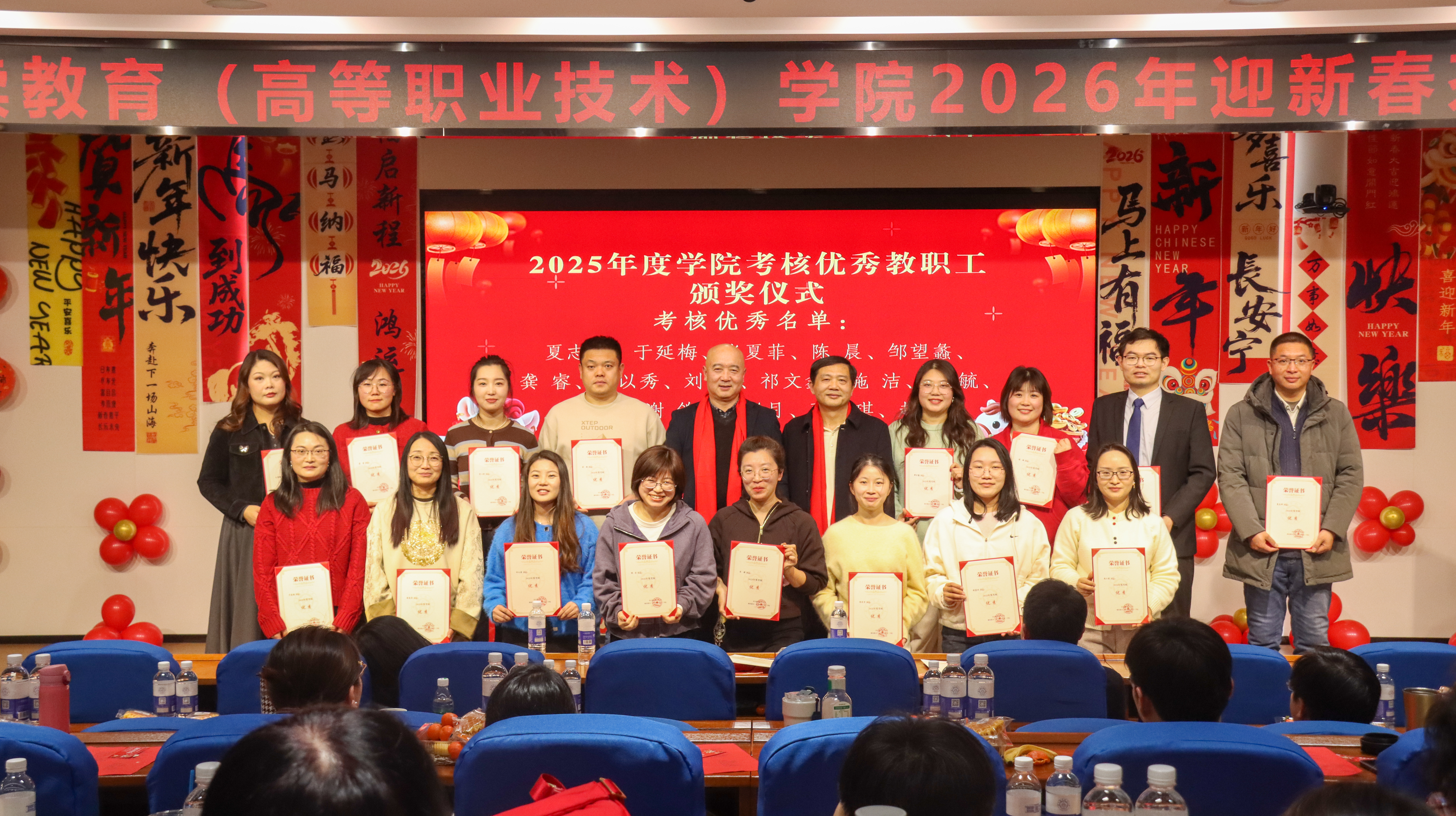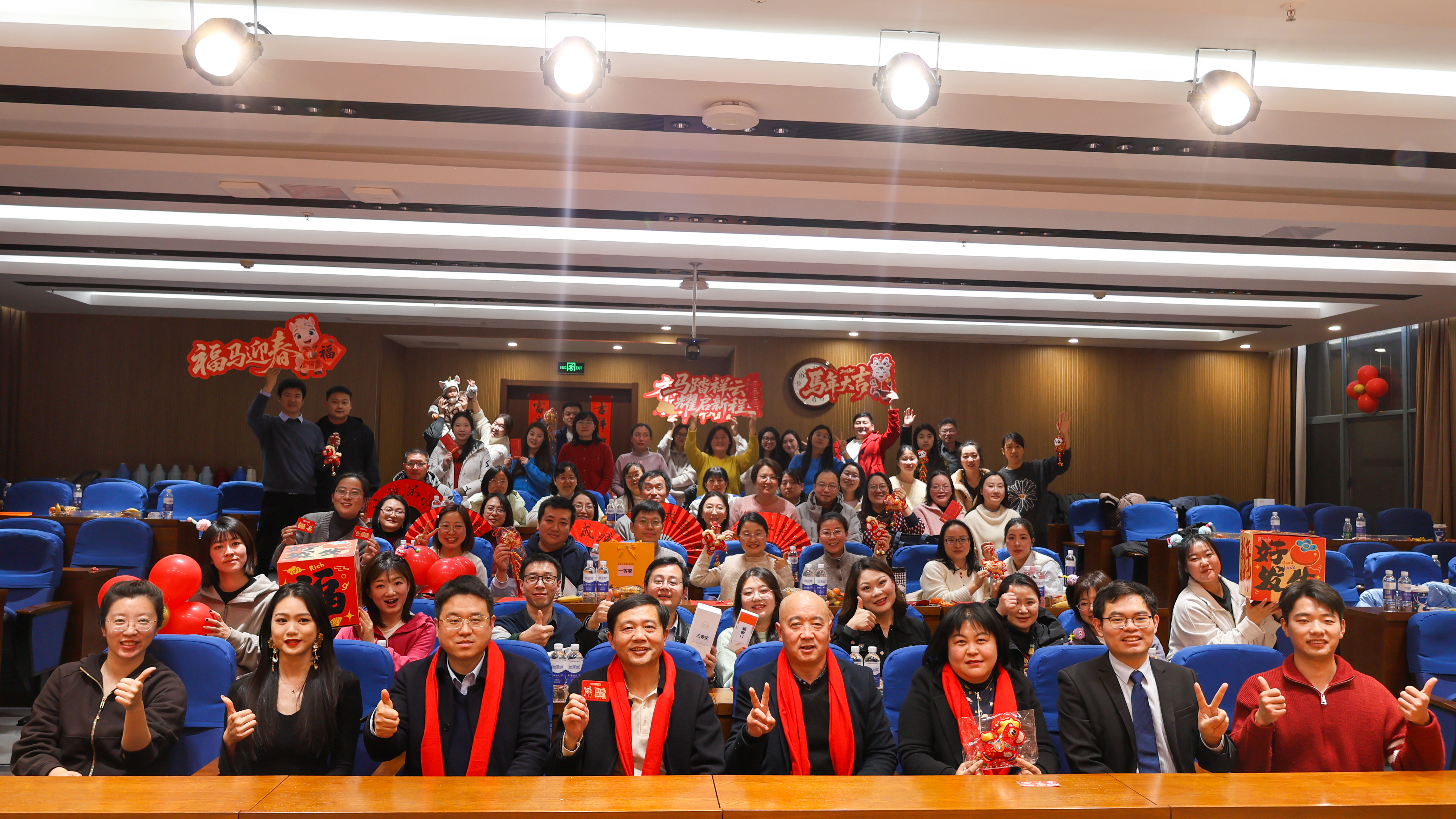 1月24日,学院2026年迎新春茶话会在明故宫校区A12号楼一楼报告厅举行。报告厅内外张灯结彩,处处洋溢着浓厚的节日氛围。学院党委书记刘建成、院长江爱华、党委副书记尹春苹、副院长黄超峰及全体教职工欢聚一堂,共叙情谊,共话发展。