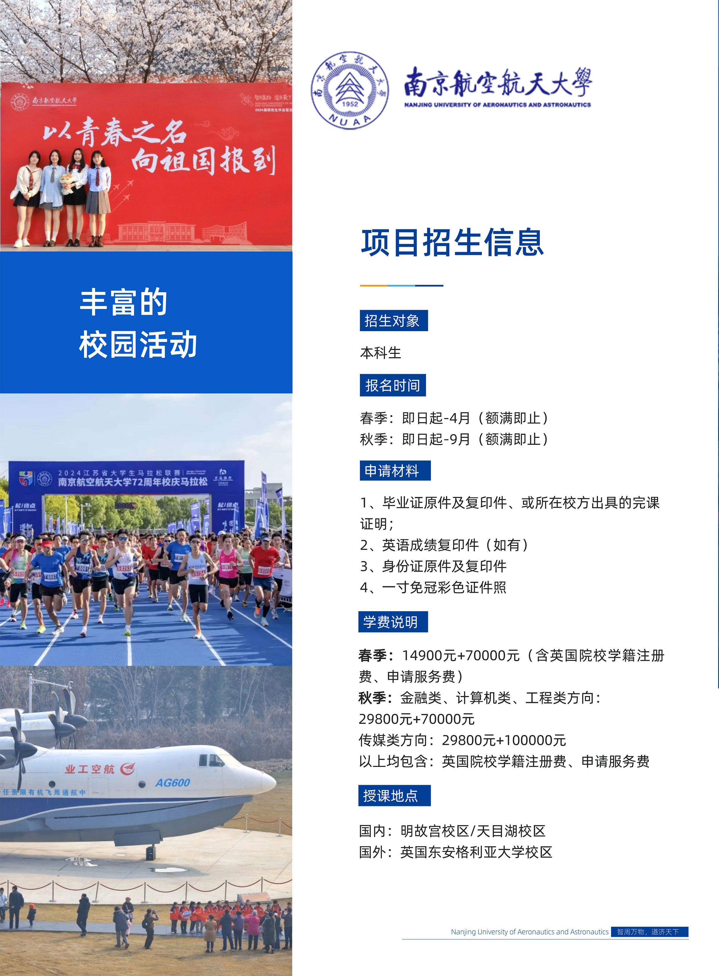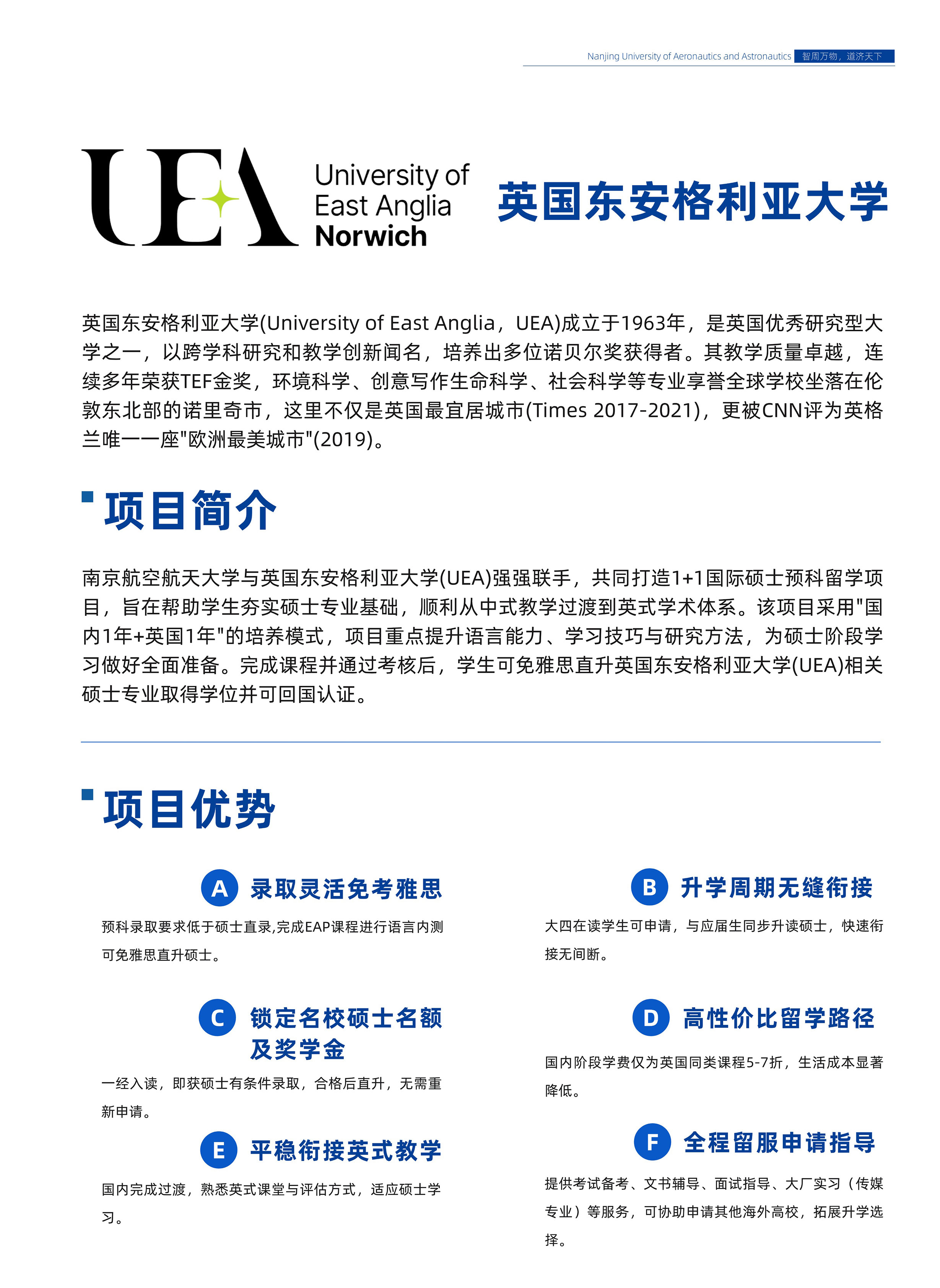 南京航空航天大学&英国东安格里亚大学1+1国际硕士预科招生简章