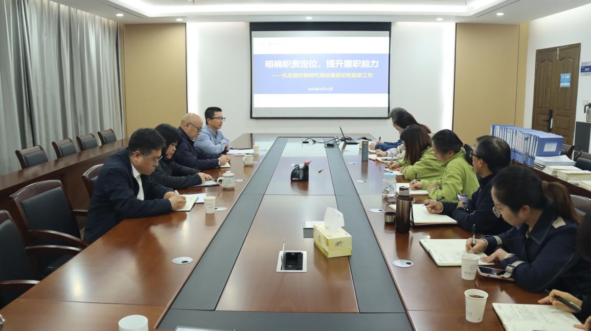 4月16日,学院召开2026年纪检工作交流培训会。会议聚焦强化党内监督、压实全面从严治党责任,旨在提升基层纪检委员履职能力,推动学院纪检工作提质增效。院党委书记刘建成、副书记尹春苹,院纪检委员、副院长黄超峰,全体党支部书记及纪检委员参加会议。