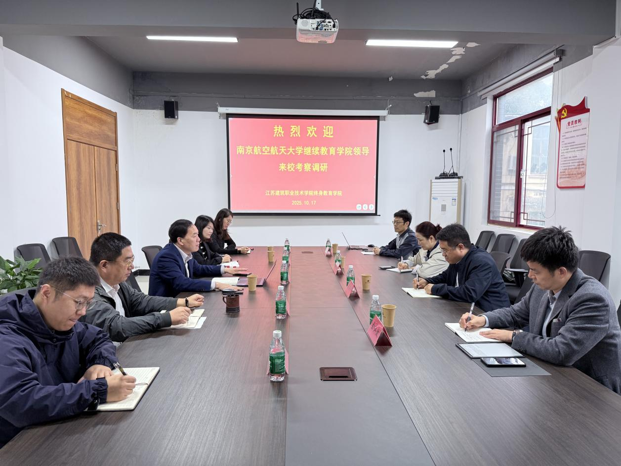 10月17日,继续教育(高等职业技术)学院副院长黄超峰带领团队前往江苏建筑职业技术学院,开展合作办学专项调研。成人教育部主任阮佳琪、培训部主任余江波及部门相关业务骨干共同参与此次调研。