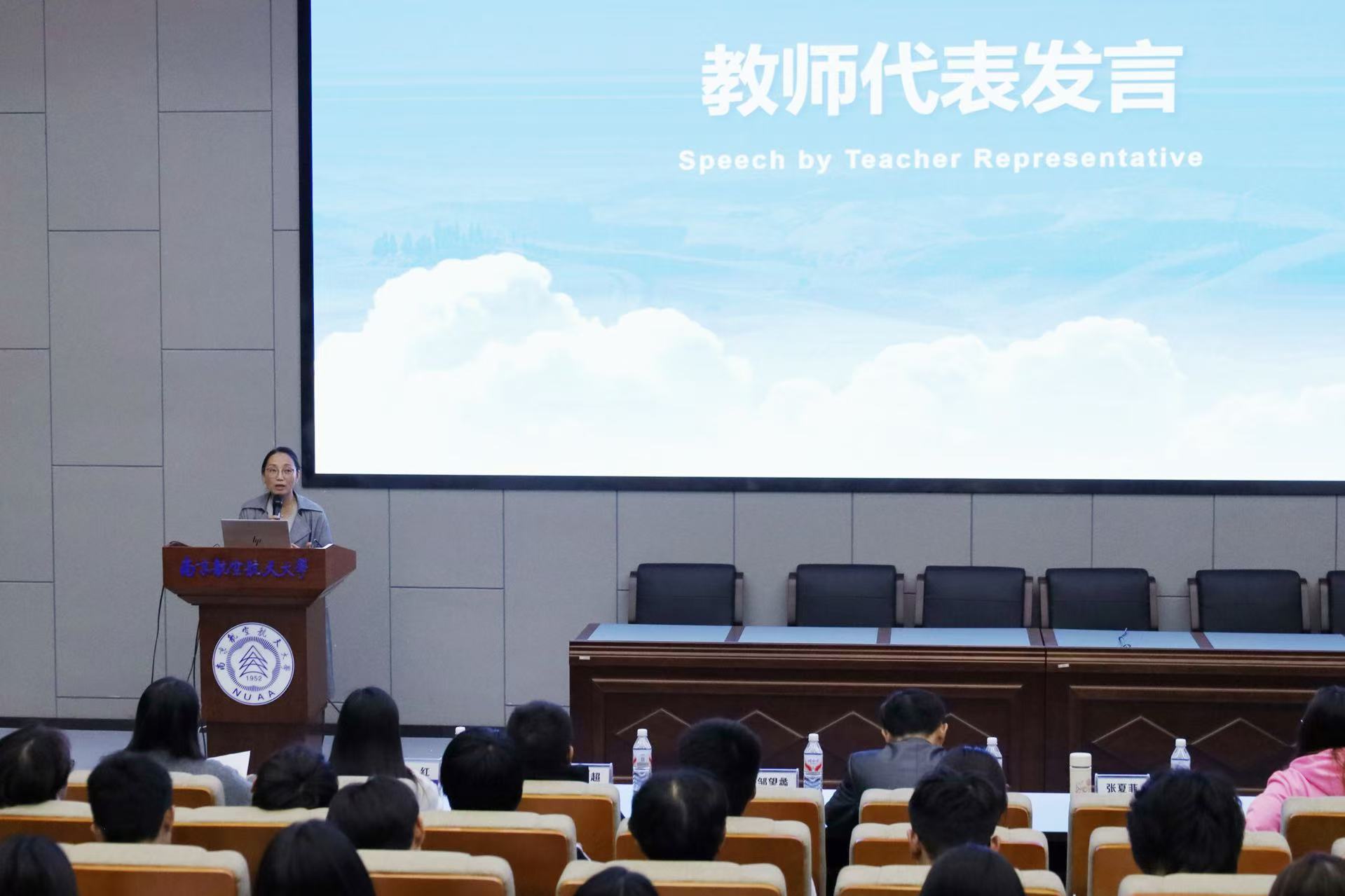 教师代表张夏菲在发言中分享了南航SQA AD项目的教学理念与师资优势。她强调,学校始终坚持以学生为中心的教育理念,通过全英文授课、项目制学习、过程性评估等国际化教学模式,为学生提供专业的指导与全面的成长支持。她期待与同学们在教学过程中相互促进、共同进步,并祝愿每一位同学都能在专业领域找到明确方向、实现显著突破。