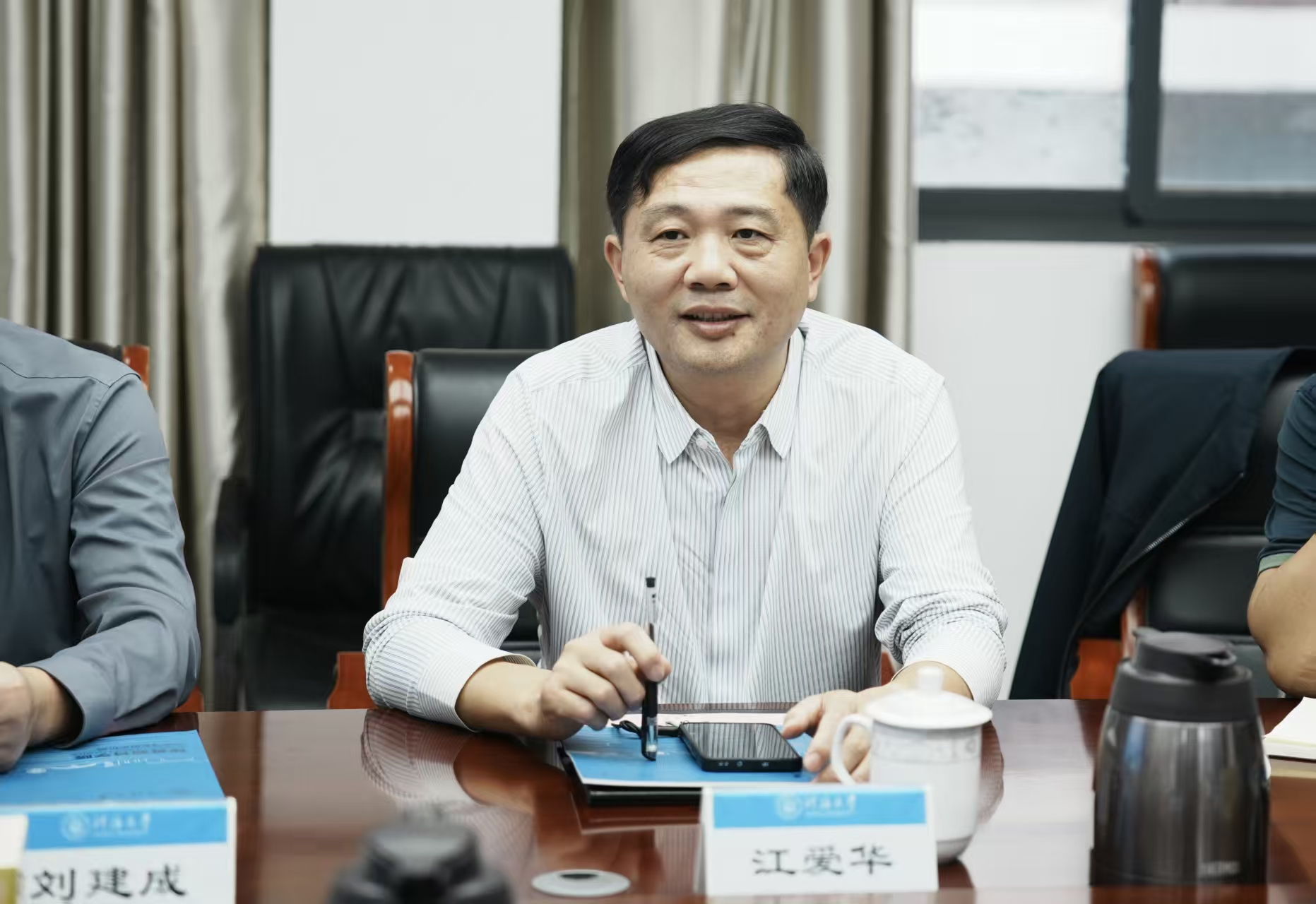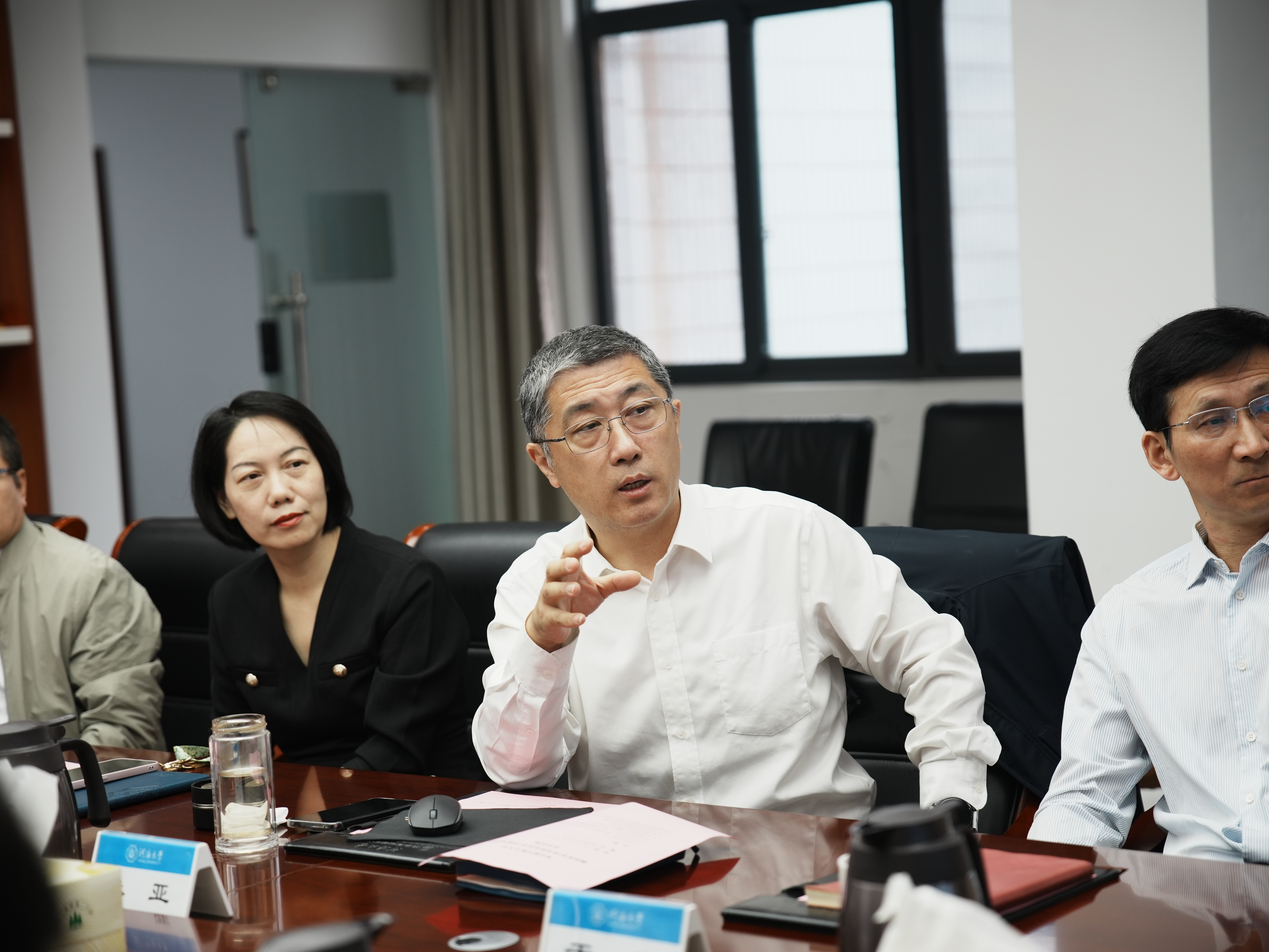 江爱华对河海大学的热情接待和宝贵经验分享表达了诚挚的感谢,并简要介绍了学校及学院的发展概况。他详细阐述了学院在当前阶段深化综合改革、推动党建与业务深度融合、探索学历继续教育与非学历教育创新发展的思路,以及在这一过程中所面临的挑战。