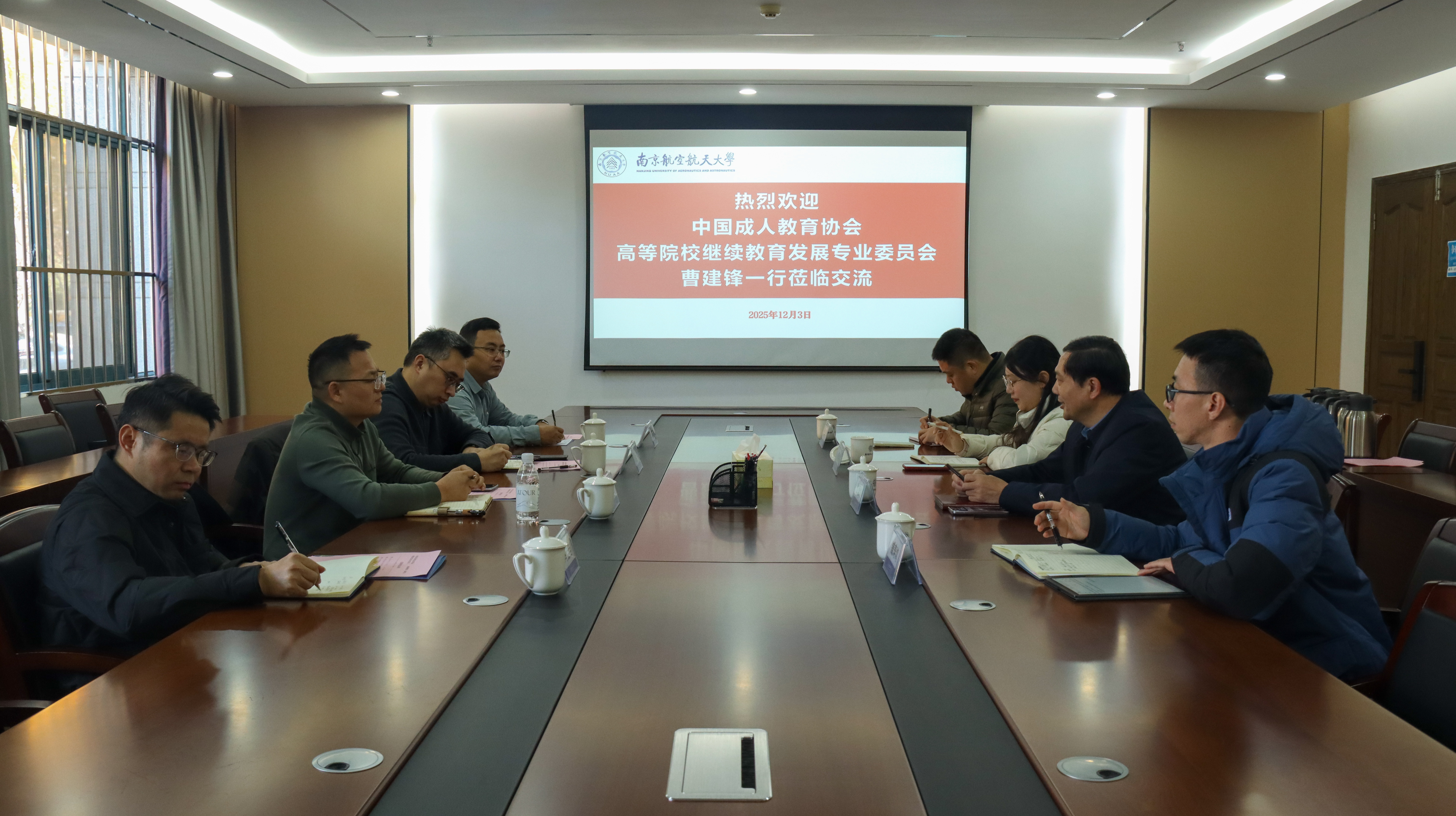 12月3日,中国成人教育协会高等院校继续教育发展专业委员会副秘书长曹建锋一行来访我院。学院院长江爱华主持座谈交流会,相关科室负责人参加座谈交流。