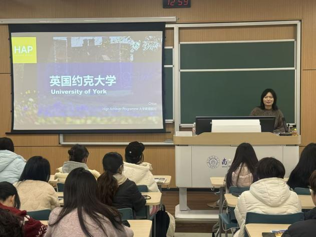 讲座开场,约克大学招生官凭借详实的数据与生动的案例,对该校核心优势展开了全方位剖析:涵盖2026年QS世界排名第169位的佳绩,具备“双金”认证的深厚学术底蕴;涉及SQA项目热门对接专业的课程设置,以及高就业率背后的就业支持体系,还包含南航SQA项目学生极为关注的升学途径。