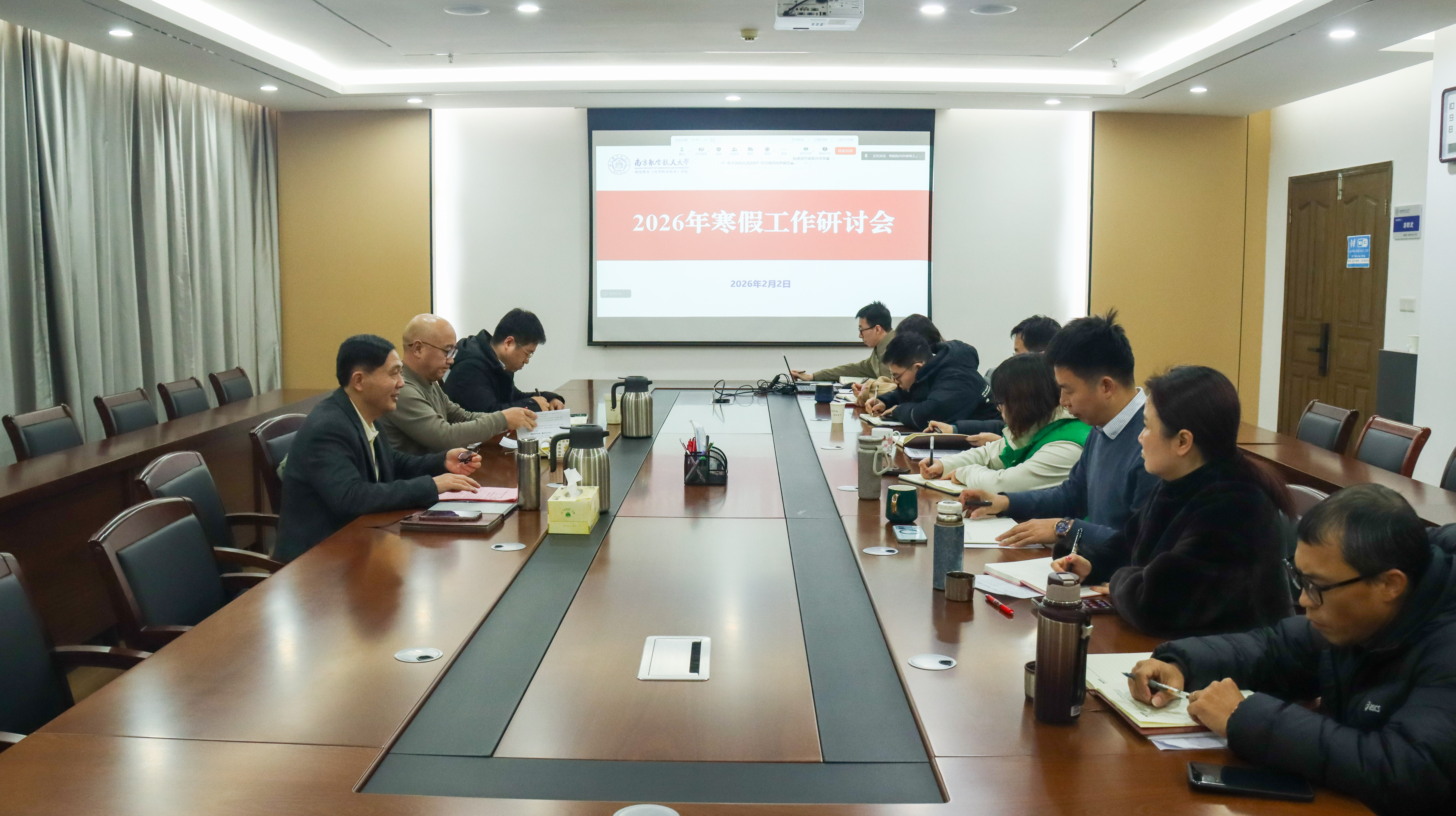 为深入贯彻落实学校寒假工作会议精神,科学谋划学院2026年事业发展,2月2日下午学院在明故宫校区召开寒假工作研讨会。会议围绕高质量可持续发展主题,聚焦学院“十五五”规划与“十年行动计划”的实施,系统研究部署2026年重点工作,进一步统一思想、凝聚共识。全体院领导、党委委员、各部门负责人参加会议。会议由院长江爱华主持。