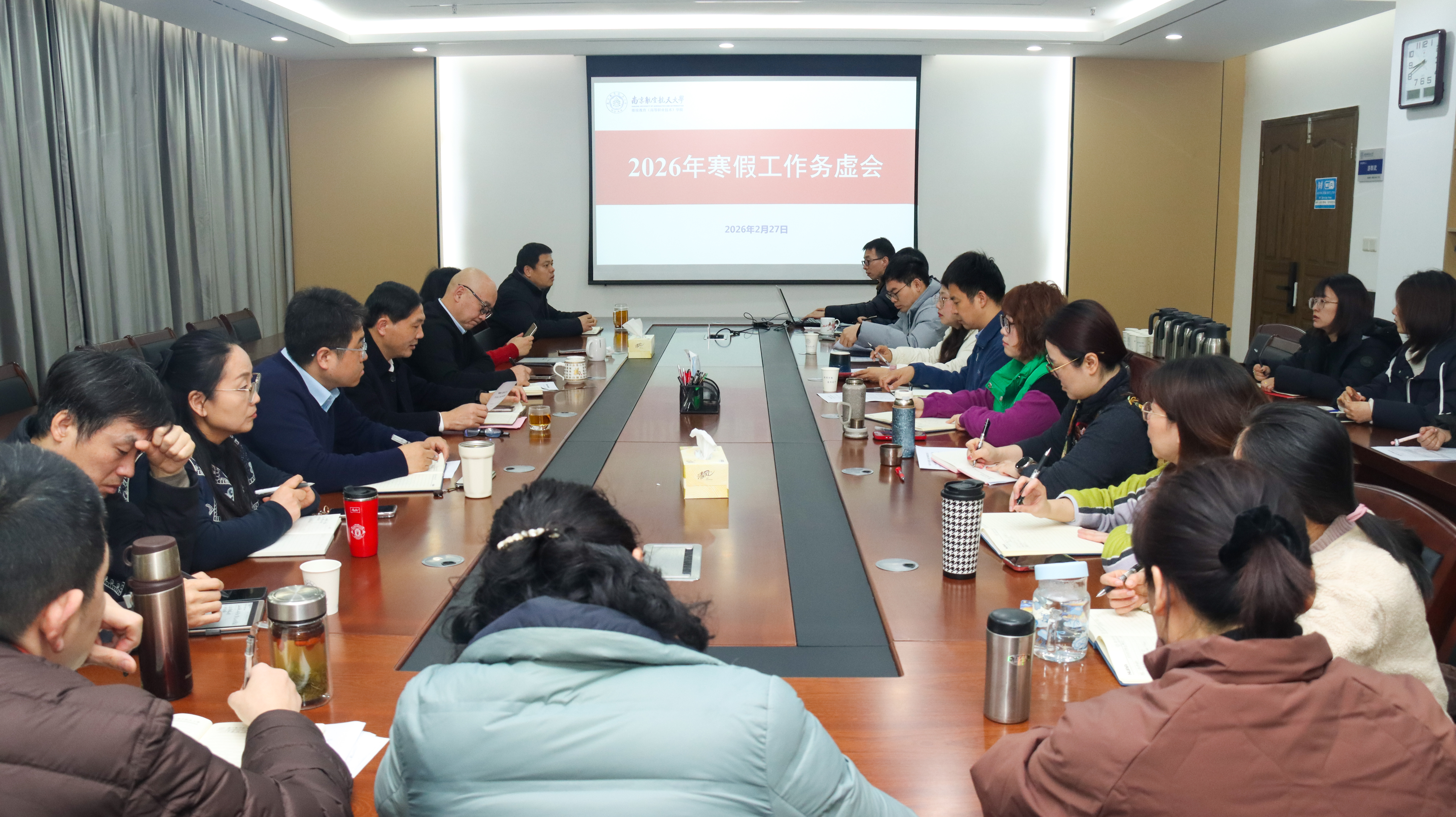 会上,高等学历继续教育、高等教育自学考试、高端教育培训、国际合作教育板块四个业务部门,以及师资与教学部、党政办公室依次汇报了寒假期间在招生布局、教学筹备、市场开拓、内部治理等方面的工作成效,并围绕2026年目标设定、具体举措及需学院支持事项进行了深入交流。党政办公室随后通报了2025年度学院信访工作情况,结合典型案例剖析,强调了进一步规范工作流程、提升服务意识的重要性。
