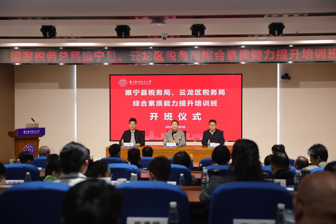 11月3日上午,培训班开班仪式在南航明故宫校区A12号楼报告厅举行。国家税务总局睢宁县税务局党委委员、纪检组组长顾怡雯,南京航空航天大学继续教育学院副院长黄超峰出席开班仪式。